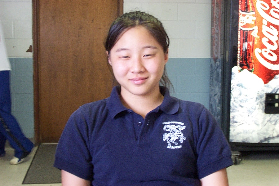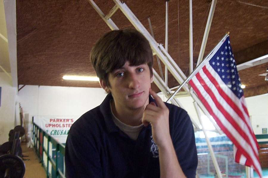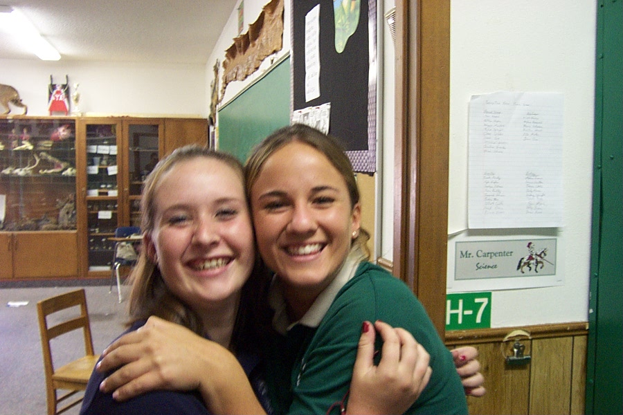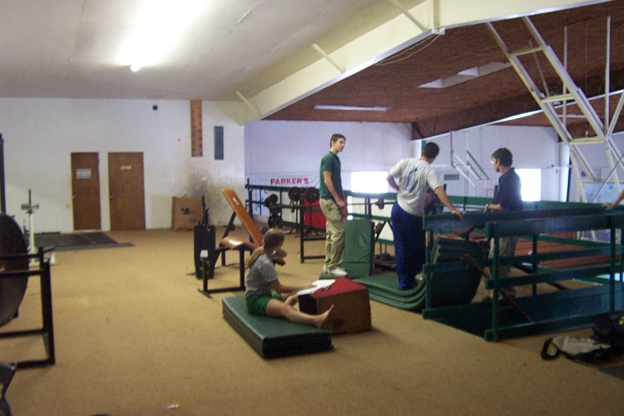 Second period weight lifting is all cleaned up. It was a good year. Jon, Coach, and Grant chat idly in wait for this class's final bell while Sarah looks on. As the time drew closer for the end of this class, Jon, Carty, and I went to the center of the room, placed our hands together, wished each other well, and walked down the stairs into the remainder of this last full day of school for the 2002-2003 year.