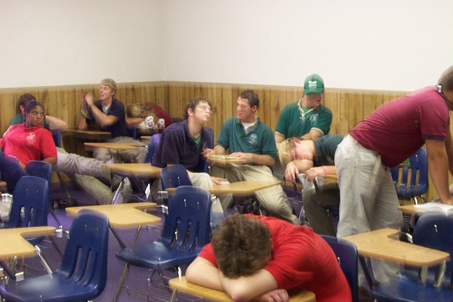 It's a little blurry, but this is a pretty good depiction of sixth period history class. It was never normally this disheveled. Miss Mullins ran a moderately tight ship. With the exception of Jon, Erica, and Elliott, though, this is pretty much where everyone was located for the second semester of America History.