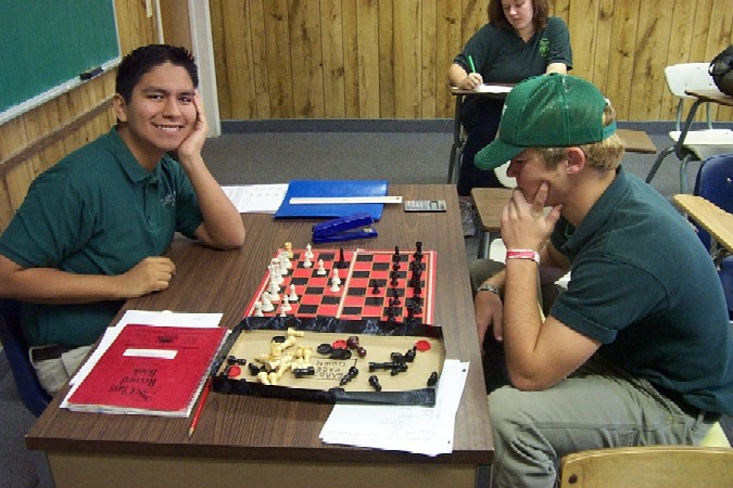 Kyle and Señor enjoy a game of chess. Looks like F3 is in trouble.