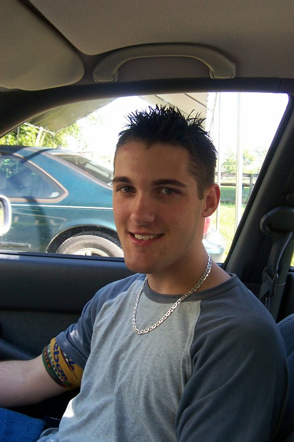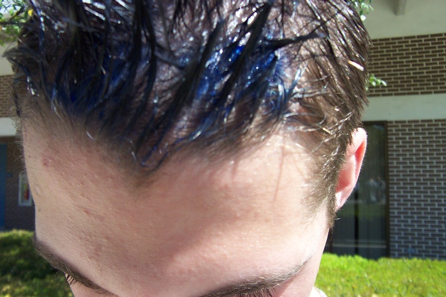 Having about all we could take of Jolie and her silly tour, we opted out of the second tour, the housing tour. Walking away, I tried to take a picture of the fire hydrant, which was thwarted by Carty. Instead, he wanted to take a picture of my spikes that I had equipped with blue gel that morning. Unfortunately, the blue is barely visible unless you are this close to my head.
