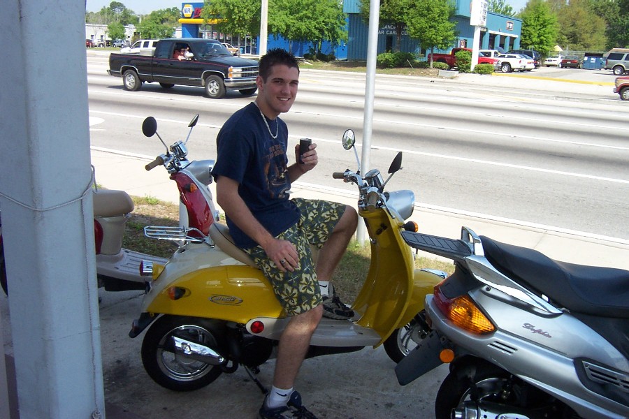"I told you, I don't like the sour stuff." Ah, now if only that was a real Vespa, and the drink in my hand was a sour Japanese soda instead of a Starbucks Double Shot. |